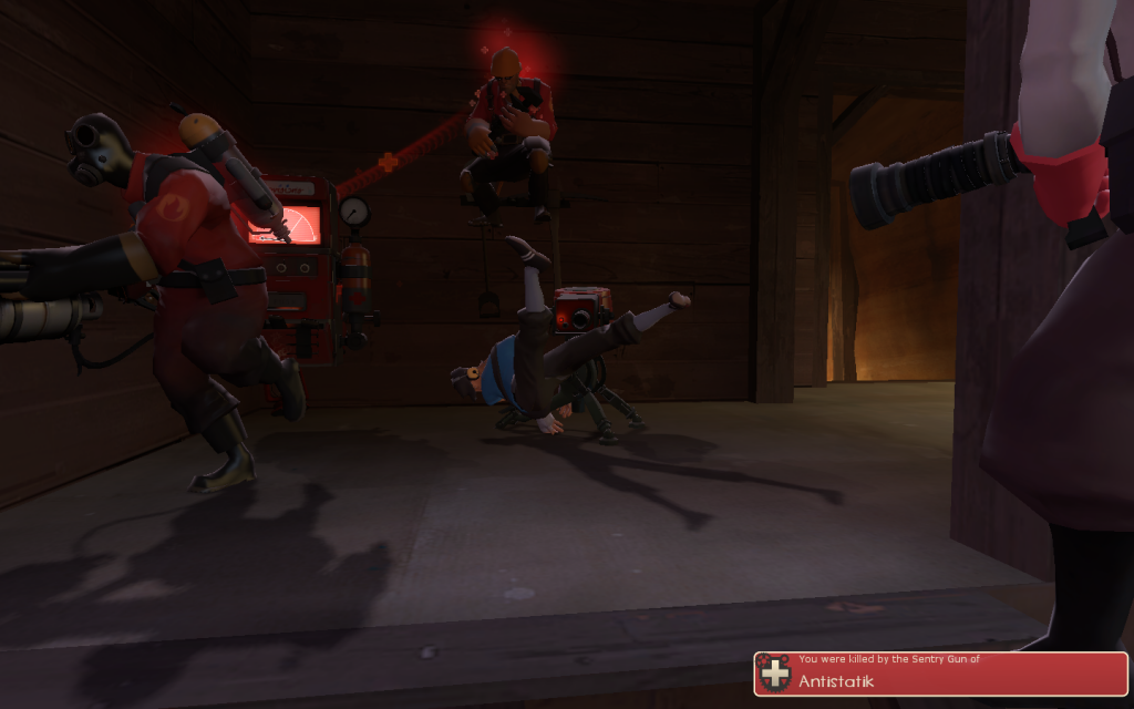 Демоман под тяжэстью своей пушки упал и ноги поломал УЖАС