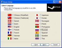 Следуем по нему нажимая кнопку Next>  Вы бираем первый пункт "I accept the license ... " и нажимаем кнопку Next> Выбираем любой пункт, т.к. влияет только на отображение времени загрузки в SteamStore, и нажимаем кнопку Next> Выбираем необходимый нам язык интерфейса, так же, выбраный язык будет автоматически выбираться в игрых, и нажимаем кнопку Next> Выбираем место установки и нажимаем кнопку Install