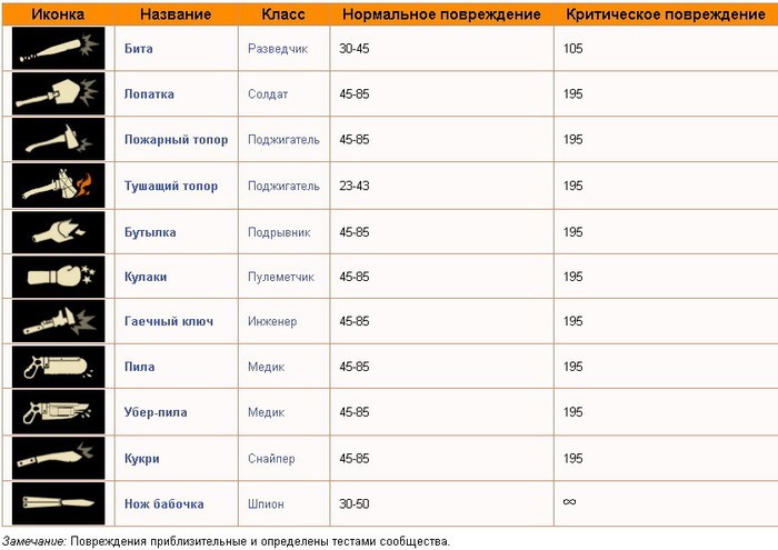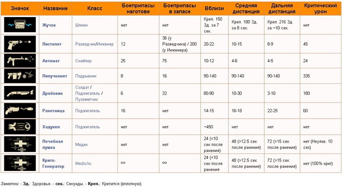 Главные оружия персонажей (1 оружия) Вторые оружия И так же 3 оружия классов TF2