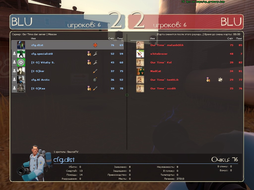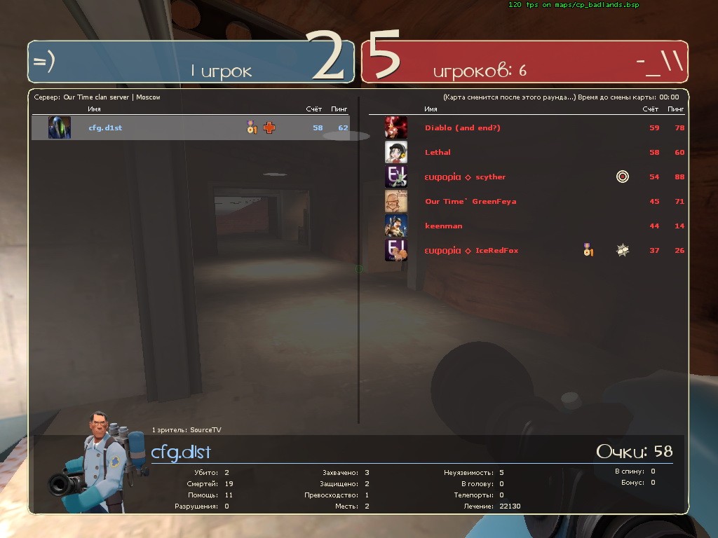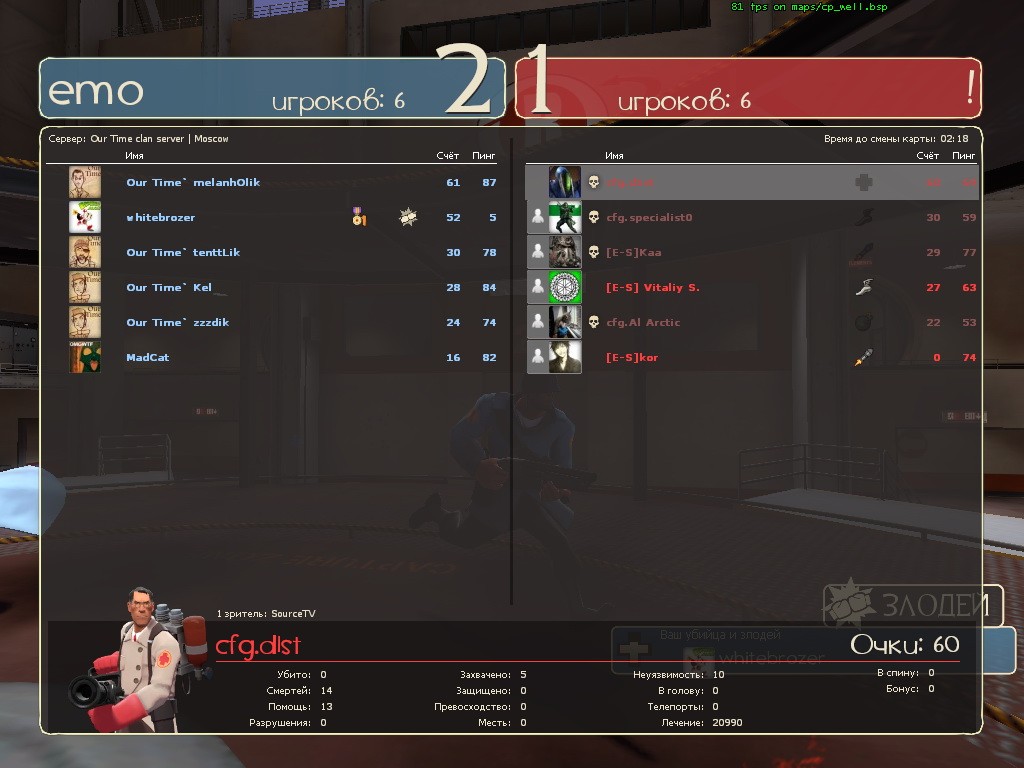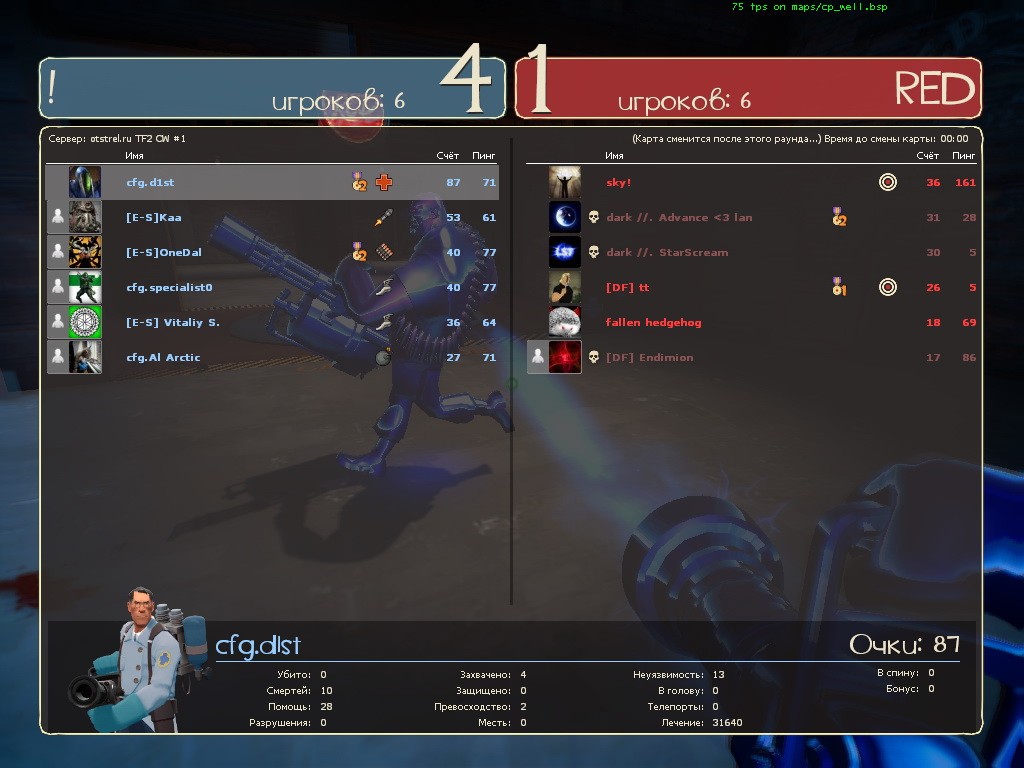 Матч-Реванш!!! пкв с DarkForce [DF]. Это те самы злодеи, которые в прошлый раз нам доказали несостоятельность игры от скилла. Да и немудрено, ведь они занимают первое место в первом дивизионе российской лиги атф2л (http://www.tf2-league.ru/index.php?opti … ;Itemid=53)