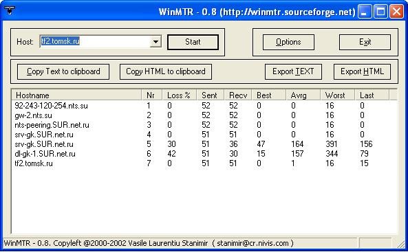 1 2 ms 5 ms 3 ms nsk-bbar1.ncc.sibirtelecom.ru [213.228.116.7] 2 19 ms 3 ms 3 ms xe-7-2-0.nsk-dr2.ncc.sibirtelecom.ru [213.228.11 9.37] 3 3 ms 5 ms 3 ms xe-0-0-0.nsk-br3.ncc.sibirtelecom.ru [213.228.11 9.26] 4 3 ms 3 ms 5 ms xe-0-1-0.nvsk-rgr4.sib.ip.rostelecom.ru [87.226. 171.117] 5 52 ms 64 ms 52 ms xe-8-3-0.m7-ar4.msk.ip.rostelecom.ru [87.226.133 .53] 6 68 ms 54 ms 48 ms 79.133.94.66 7 122 ms 120 ms 122 ms 83.229.225.215 8 121 ms 120 ms 122 ms GW-TUSUR.synterra.ru [83.229.245.222] 9 * 122 ms 122 ms gw-gk.SUR.net.ru [88.204.72.117] 10 122 ms 126 ms 124 ms srv-gk.SUR.net.ru [88.204.72.121] 11 124 ms 124 ms 126 ms srv-gk.SUR.net.ru [88.204.72.66] 12 122 ms 122 ms 120 ms dl-gk-1.SUR.net.ru [88.204.72.130] 13 126 ms 124 ms 126 ms tf2.uvdragon.ru [88.204.75.150]