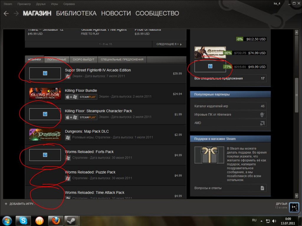 p.s. Проблема появилась вчера, думал что сервера стима перегружены. Ах да, иногда (с шансом падения шапки в тф2) главная страница загружается, но с многочисленными вопросительными знаками вместо картинок (всего 1 раз так было).