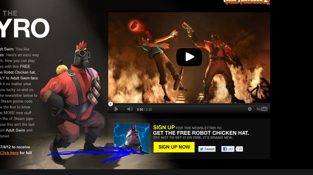 | События, предшествовавшие обновлению Обновление 1.2.1.5 Обновление 1.2.1.6 • День 3 (28 июня): Запись блога разработчиков: Это третий и финальный день Пиромании (перевод)! Обновление наконец вышло! Новые предметы! Новые достижения! Новый игровой режим! Пировидение! Бонго! И все это уже появилось! Мы настолько этому рады, ЧТО ВСЕ ПИШЕМ ТОЛЬКО С CAPS LOCK'ОМ! МЫ БЕРЕГЛИ ЭТО ДО ОСОБОГО СЛУЧАЯ, НО БОЛЕЕ ОСОБОГО УЖЕ НЕ ПРЕДСТАВИТСЯ! ЧУВАК, МЫ СЛОВНО КРИЧИМ! БУДТО МИЛЛИОНЫ ГОЛОСОВ КРИЧАТ ХОРОМ, И ЭТОТ ХОР УВЕЛИЧИВАЕТСЯ! ЧТО ТАКОЕ, РОБИН? ладно, caps lock выключен. мы не можем даже нормально писать предложения, из-за того, что они отобрали наш caps lock. но они не забрали нашу единицу !!!!!!111 о, блин, они забрали и ее теперь тоже. наслаждайтесь обновлением, люди. ах. да, еще кое что: только потому что это последняя часть "знакомьтесь,...", не думайте, что это последнее большое обновление. у нас еще большие планы на будущее, так что оставайтесь с нами [восклицательный знак] Оригинал Это последнее видео из серии «Знакомьтесь, Команда». Чтобы подчеркнуть это, Valve одновеременно выпустили Source Filmmaker, инструмент, с помощью которого были сделаны все эти ролики. ![]() Анонсированы новые предметы из ролика Pyrovision Goggles, Balloonicorn, Rainblower, Lollichop, Burning Bongos, Infernal Orchestrina. Халява! Можно бесплатно получить шапку Робоцип от Adult Swim! Для того, что-бы получить ключ шапки нужно зарегистрироваться на сайте Adult Swim. Код придет после 7 июля. • День 2 (27 июня): Запись блога разработчиков: В конце концов, обновление Pyromania это праздник, но не сколько для нас, сколько для вас: TF сообщества, и даже более важно чем, то, что мы, писатели блога TF, и насколько велико было вчерашнее сообщение в блоге. Этот материал о Men Without Hats был профессиональной высотой. На самом деле мы решили больше никогда не трогать этот блог, в надежде, что сохраним его для будущих поколений в таком прекрасном состоянии. Вам тогда, наверное, любопытно, зачем мы засоряем блог этими словами, что вы читаете сейчас. Ну, если вы считаете, что ведение блога слабо подходит под понятие работа, то не ведение оного квалифицируется еще хуже. Так что, как альтернатива увольнению, мы приветствуем нас на Втором дне Пиромании в блоге (перевод), который мы выбрали в качестве момента, чтобы тихо отразить ту комедийную высоту, которую мы достигли вчера. Кроме того, у нас остался лишь один день до того, как Пиромания выдет, в виде взрывающегося огненного шара, состоящего из наборов новых предметов, нового игрового режима и, конечно же, Meet The Pyro. Оригинал Добавлены новые предметы под лозунгом City On Fire (Город в огне), включая шляпы и оружие для разведчика, снайпера и солдата, и одно новое оружие для поджигателя. Кроме того, под надписью счётчика «Day 3» лежит странная граната. Щелкнув по ней, можно перейти на страницу со стихами про солдата (перевод), а так же несколькими фотографий с участием солдата, Чародея Маразмуса, и красного шпиона. • День 1 (26 июня): Запись блога разработчиков: Вы правильно прочитали: долгожданный финал "Meet The Team", а именно Meet The Pyro появится в ближайшие 3 дня, и мы решили провести масштабный апдейт, чтобы отпраздновать это! Вот только остался остался один вопрос: как назвать это обновление. Пока мы думали, кто-то решил включить радио. И как вы думаете, какая песня там была? Верно, "Safety dance". "Это очень запоминающаяся песня" - сказали мы. "Кто это поет?" Ну, мы не хотим вас расстраиват